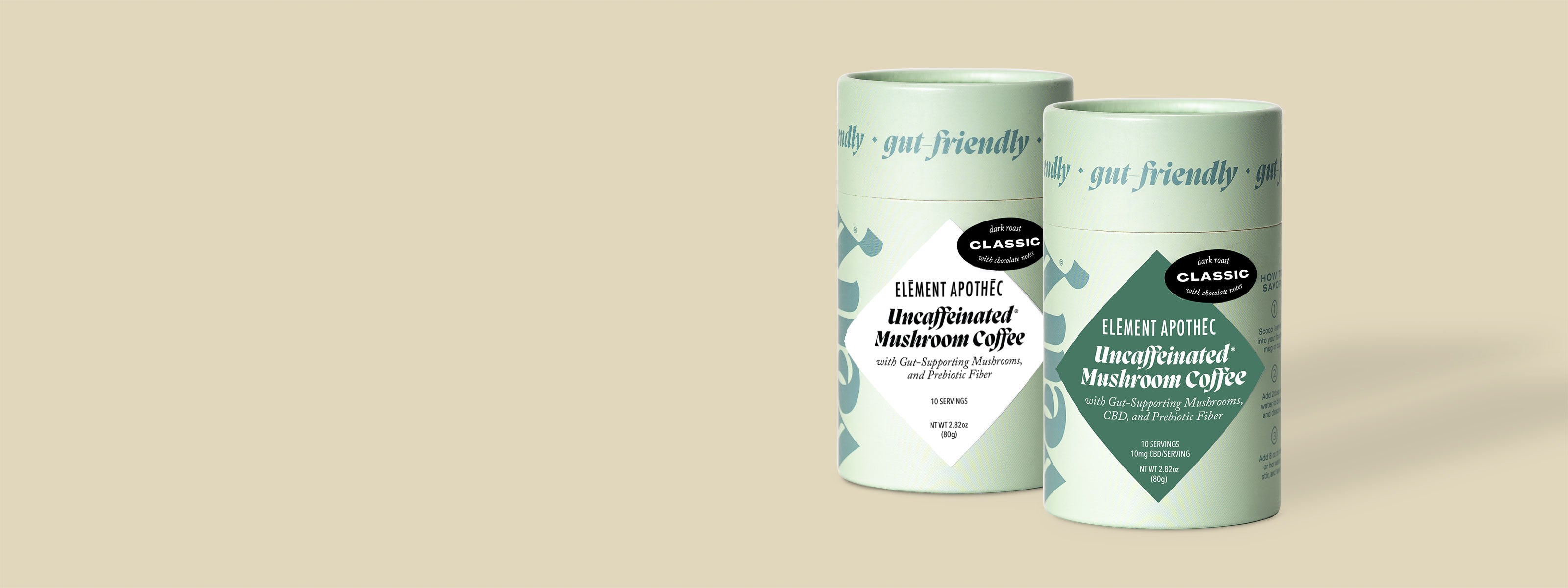 ELEMENT APOTHEC'S NEW UNCAFFEINATED MUSHROOM COFFEE. NOW WITH AND WITHOUT CBD